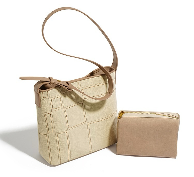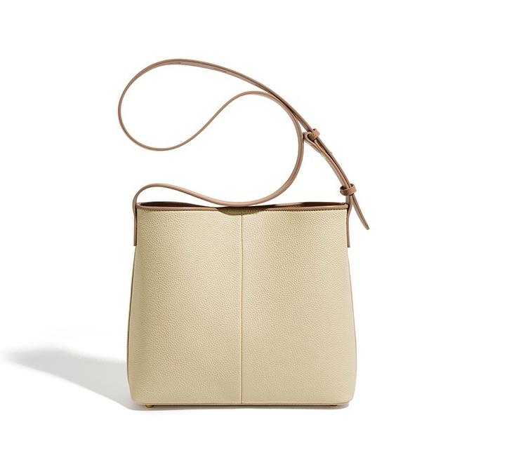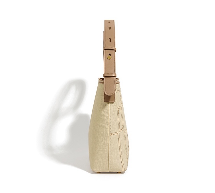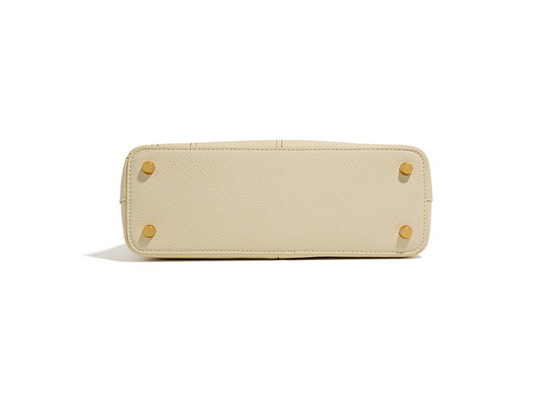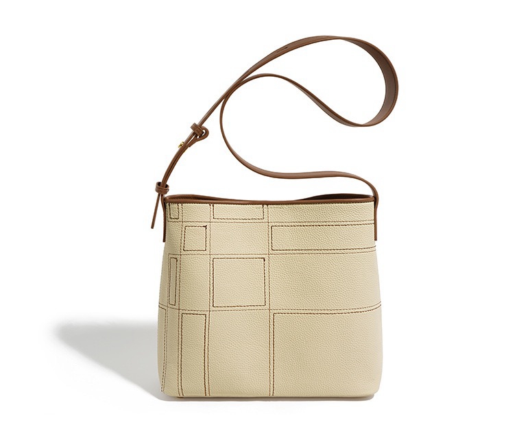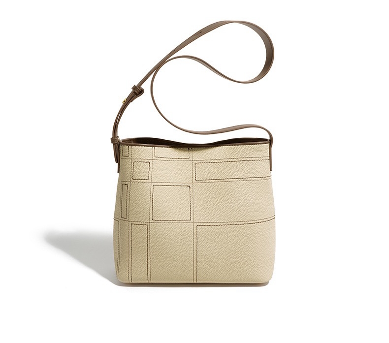 This bag is made of cowhide leather, which is soft to the touch and durable. Its surface is subtly embossed with a geometric pattern, adding a unique visual dimension to the overall look. The embossed pattern on the front and sides of the bag gives the bag a chic aesthetic in its simplicity.