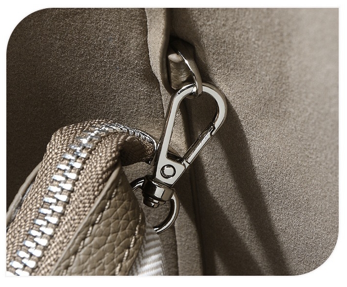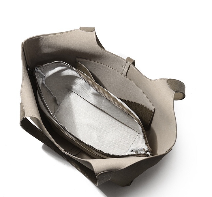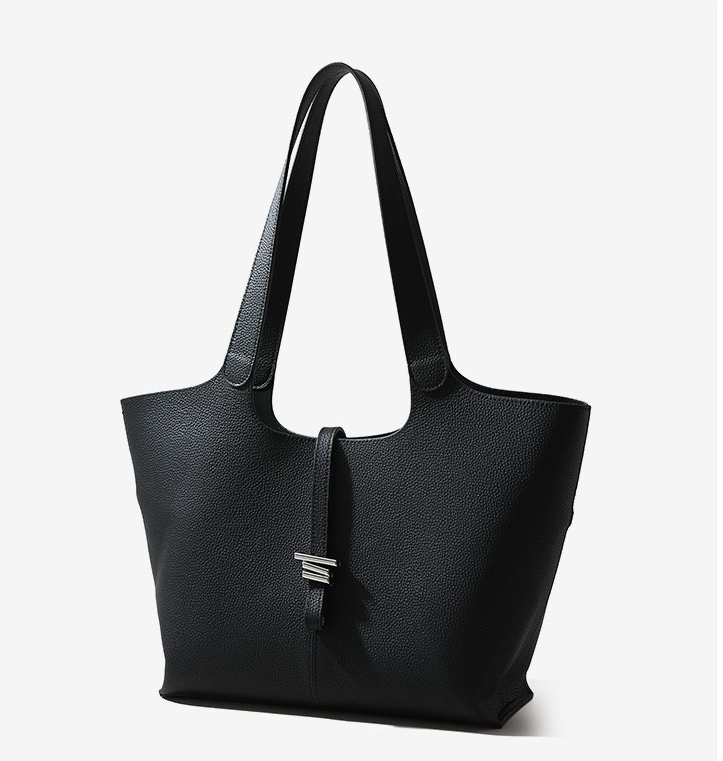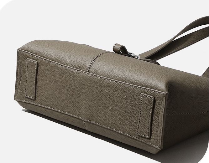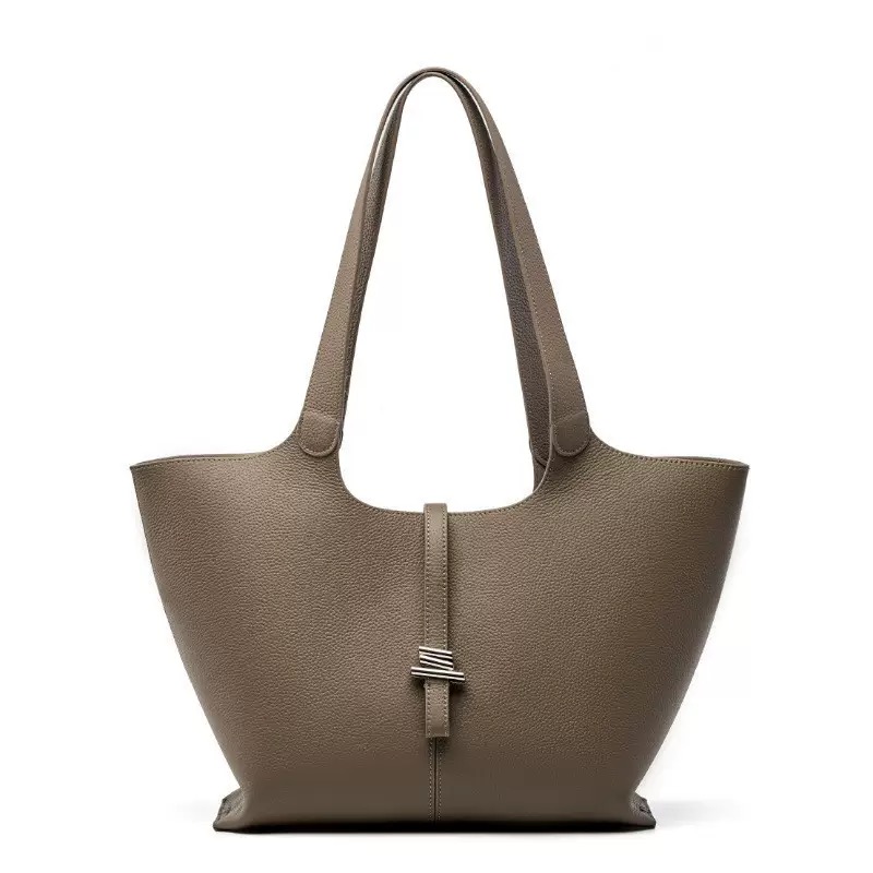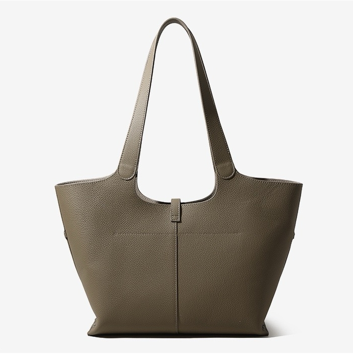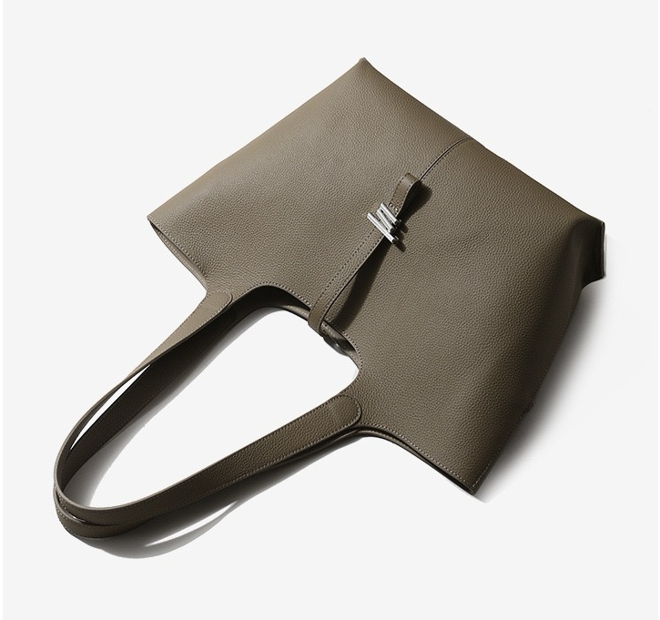 This bag is generously shaped, with a wide body and two slender shoulder straps, the stitching design in the center of the bag adds a sense of three-dimensionality, and the chic metal buckle not only serves as a closing component, but also as an eye-catching decoration. Made of fine leather, the bag is both elegant and practical.